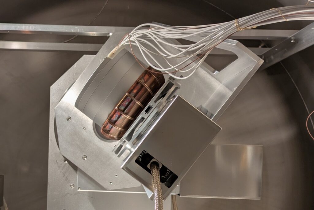Gwendal Hénaff worked during his thesis on the development of a miniaturised plasma camera (shown in the insert photo). This camera underwent calibration tests in a vacuum chamber.
