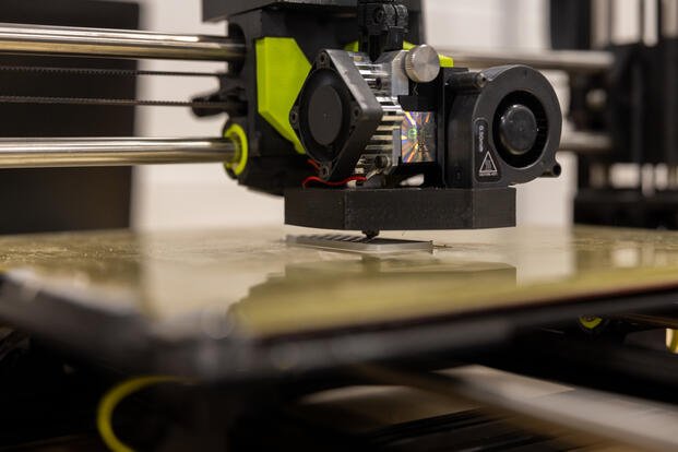 A 3D printer is utilized by the II Marine Expeditionary Force Innovation Campus, producing an additive fabrication at Marine Corps Base Camp Lejeune, June 13, 2025. U.S. Marine Corps photo by Corporal Apollo Wilson, via Military.com