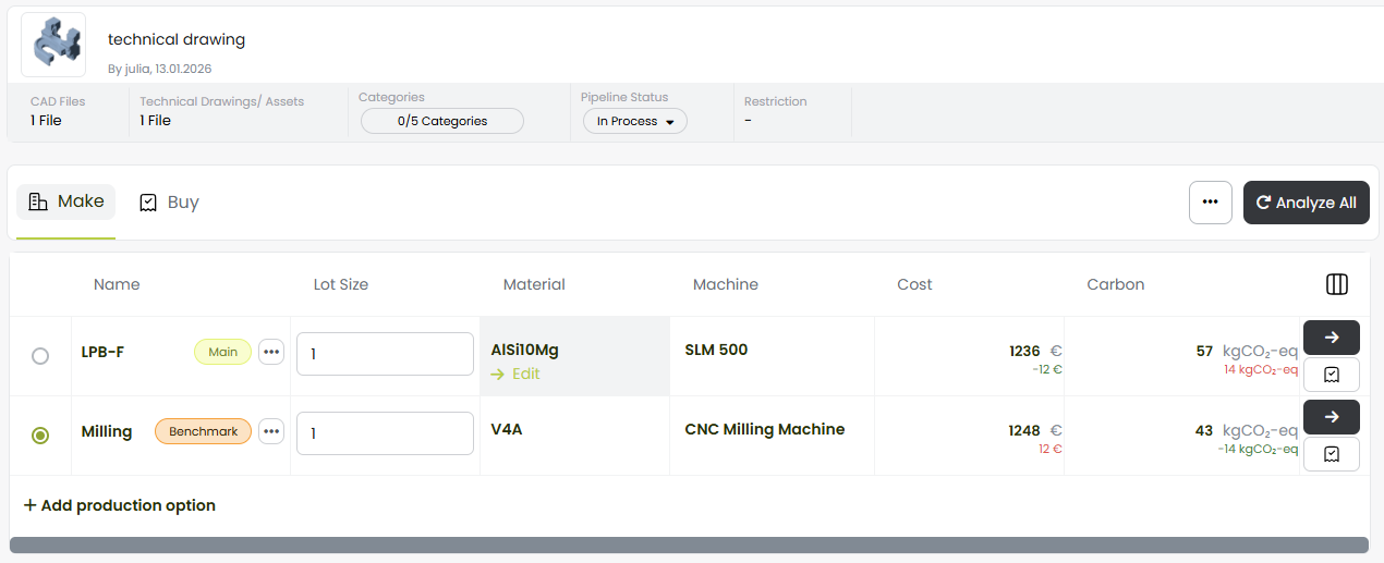 Instead of delaying RFQs or relying on assumptions, teams can quickly assess whether a part should be machined, additively manufactured, cast, or sourced externally by identifying the cost drivers early, before committing engineering time to detailed design work.