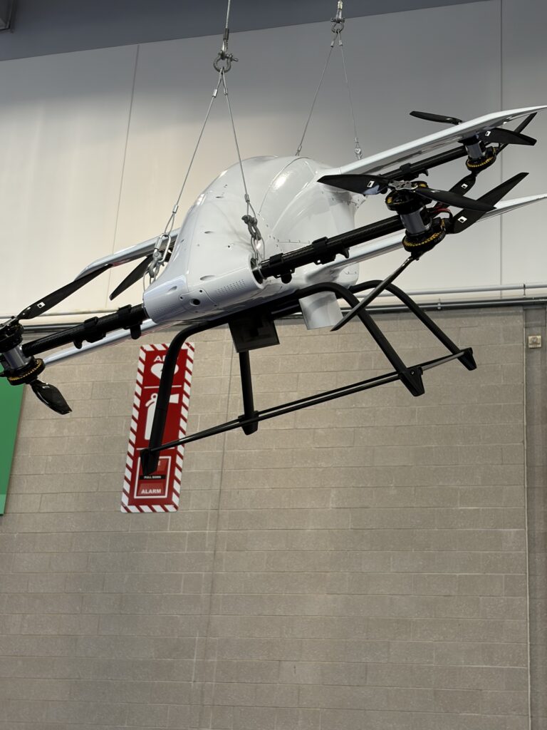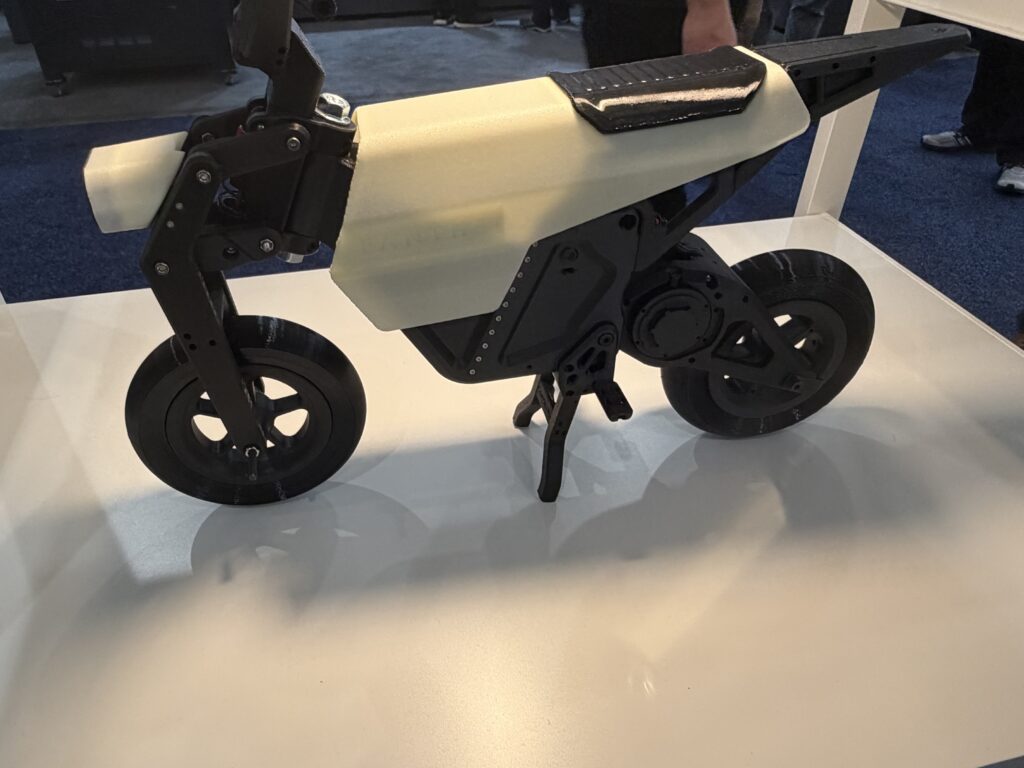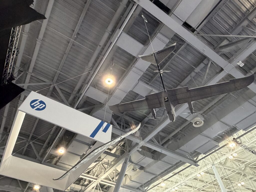We also saw a Blueflite “last mile delivery” drone hanging above the booth. Its wings, landing gear, and body panels were all 3D printed with MJF technology.