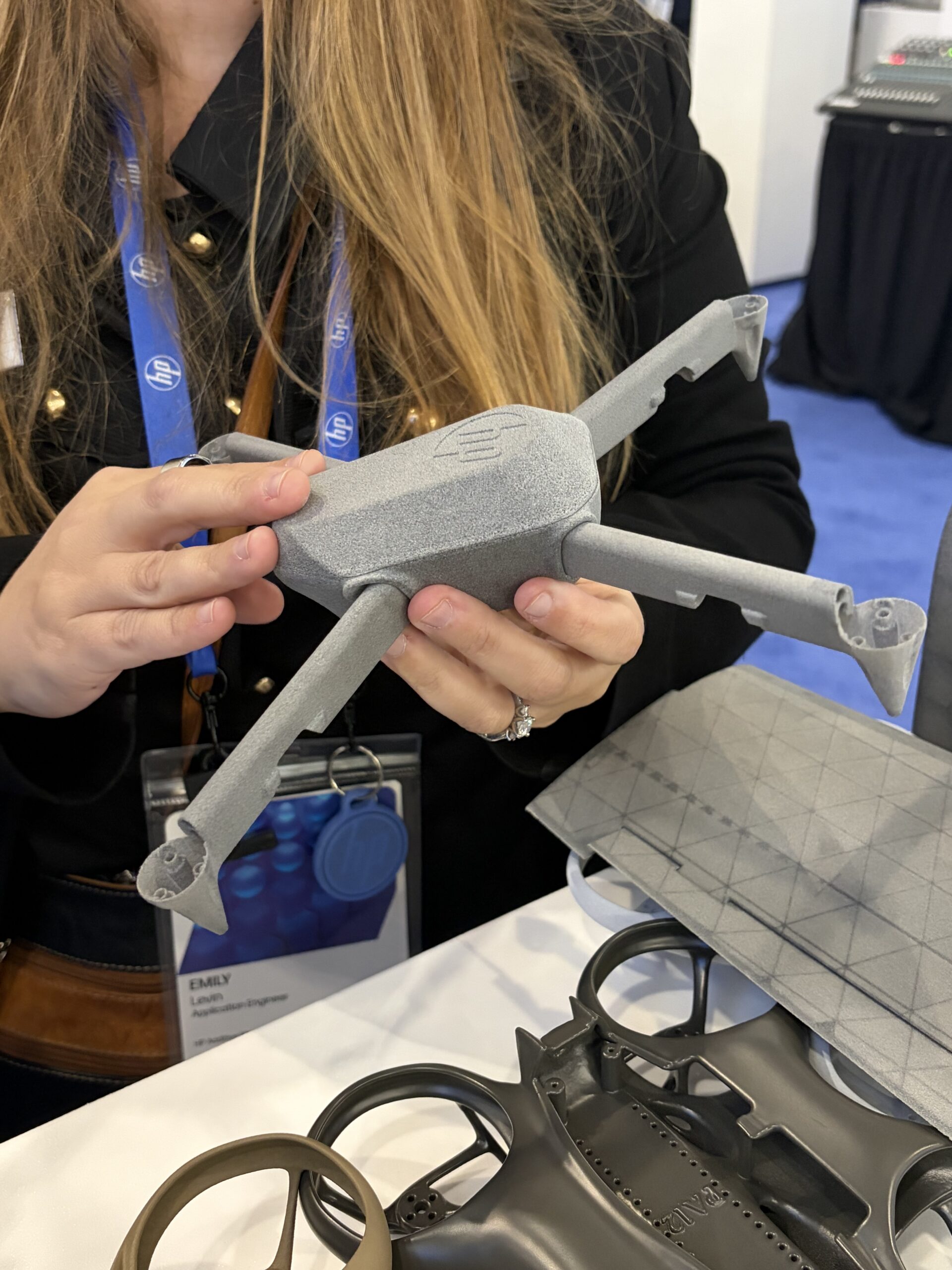 HP also had plenty of drones at its RAPID booth. Applications Engineer Emily Levin said “there’s a couple value propositions of Multi Jet that are super important” when it comes making drones, such as the ability to create complex geometries and ultra-thin walls. Because they were seeing so much adoption of MJF for this particular application, the company now has a dedicated drones team.