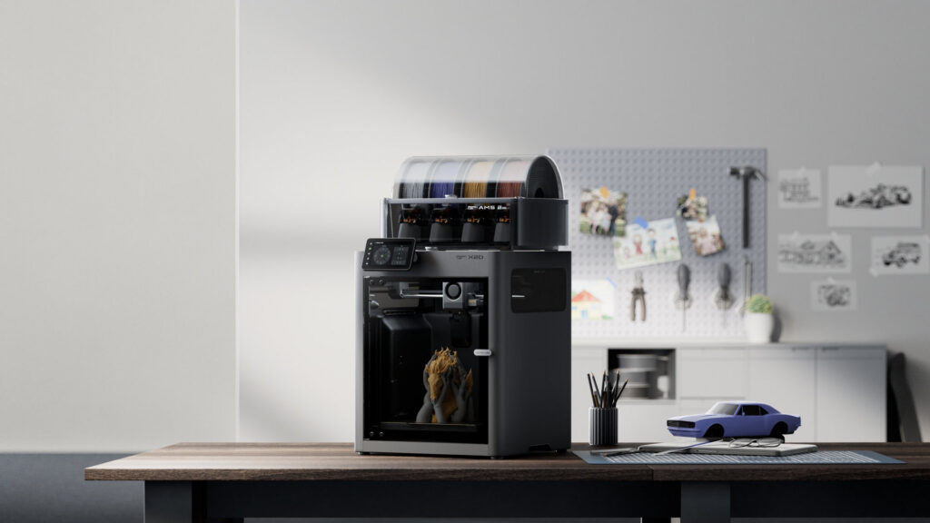The X2D automatically calibrates before each job, monitors the process with dozens of sensors and offers real-time compensation for any deviations, and prints with two nozzles, which should make it easy to remove supports. It features an enclosed, temperature-controlled print chamber, a triple-stage air filtration system that absorbs odors and captures particles, and a noise level that’s below 50 dB in silent mode. With a single main nozzle, the build volume is 256 × 256 × 260 mm, and it’s 235.5 × 256 × 256 mm with the dual nozzle intersection. There’s an optional Vision Encoder, which Bambu says offers accuracy down to 50 microns, a PMSM motor with 20 kHz sampling rate, and models come with validated print settings. Finally, Bambu Studio, Bambu Handy, MakerWorld, Maker’s Supply, Maker’s Lab and the designer crowdfunding program are not just add-ons, but, as the company write, “the context in which the printer operates.” The new X2D is available at $649 (before tax), and the Combo version, which includes a multimaterial feeding system, starts at $899 before tax.