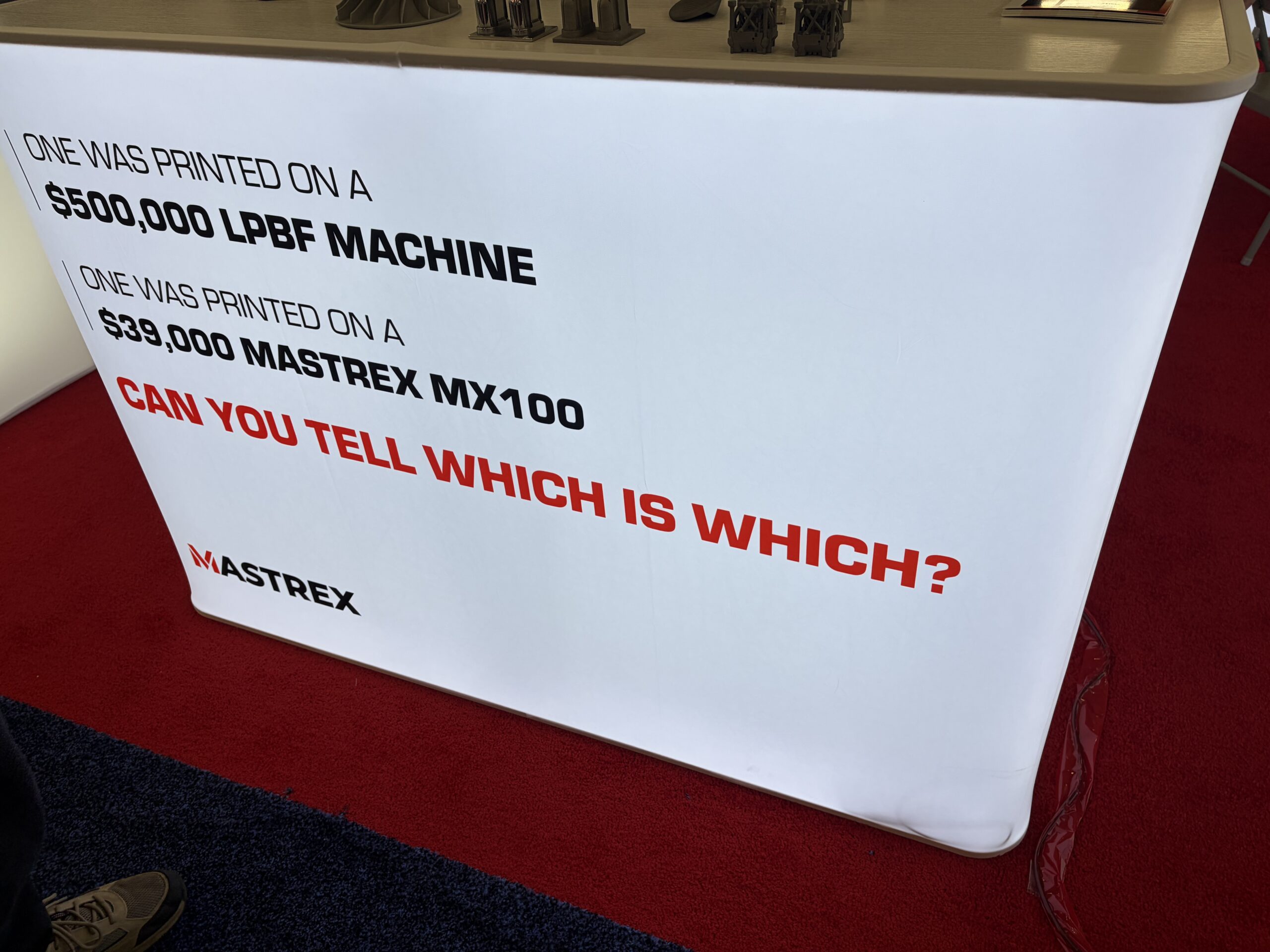 - Mastrex RAPID+TCT booth. This is 3D printed out of aluminum.